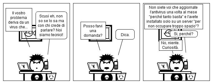 Dopo cinque minuti scarsi, ho il documento e, nella mia mente, promuovo il "Supposto Tecnico" a "Tecnico". Chiamo nuovamente il numero dell'utOnta per dirle che faro' l'intervento al suo PC.