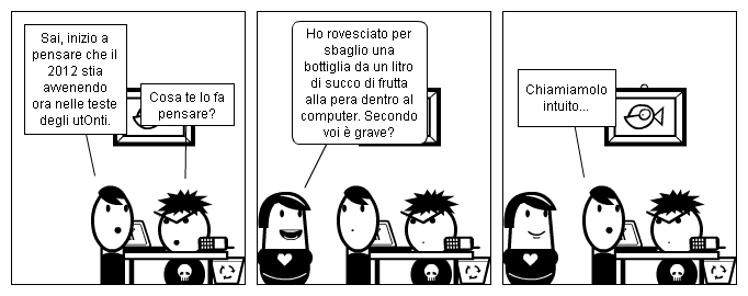 Umh, prima utOnta ha dovuto chiedere se era stato il capo POI si e' ricordata che e' saltata la luce? Le cose sono due: o ha bisogno di un buon oculista oppure il suo capo dovrebbe imparare a lasciare fare ai tecnici (come gli avevamo gia' detto). Chissa' perche' propendo piu' per la seconda ipotesi. Tutto questo, ovviamente, ignorando il fatto che i PC sono dotati di UPS e che, quindi, la scusa "e' saltata la luce" non regge molto.