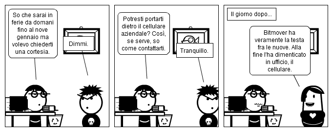 Sono le 18 ed e' ora di andare a casa. Mentre sto per spegnere il PC noto che e' arrivato un ticket dal titolo "Problema Excell" (con due "L") e con testo "Problema Excell". Visto che questa utOnta sembra particolarmente rintronata e non ho voglia di fare le nove qua dentro, rimando tutto al giorno dopo.