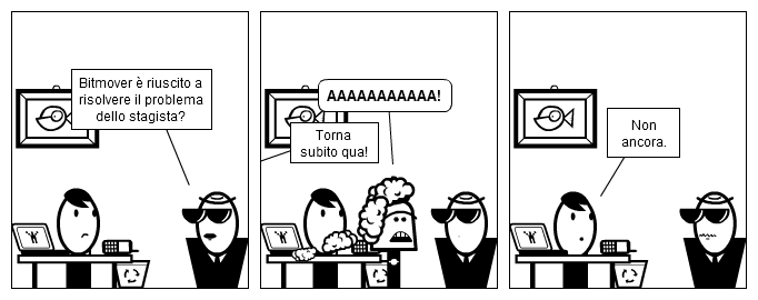 Giornata di delirio in ufficio visto che la nostra segretaria-centralinista-tuttofare e' a casa malata, il Boss e' a un corso di aggiornamento e il Collega e' presso un cliente per tenere un corso sull'uso di Word, Access e simili.